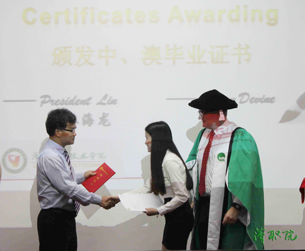 7月2日下午,我院2016届中澳毕业生毕业典礼在学术报告楼101报告厅举行。澳大利亚昆士兰州TAFE技术学院院长Aaron Devine、国际合作处处长Philip Fung等澳方代表,我院院长林海龙,党委副书记植新培,副院长陈景勇、许建,市外事侨务局相关领导,外经贸相关负责人及教师,校企合作办相关负责人以及中澳班全体师生共同参加了毕业典礼。