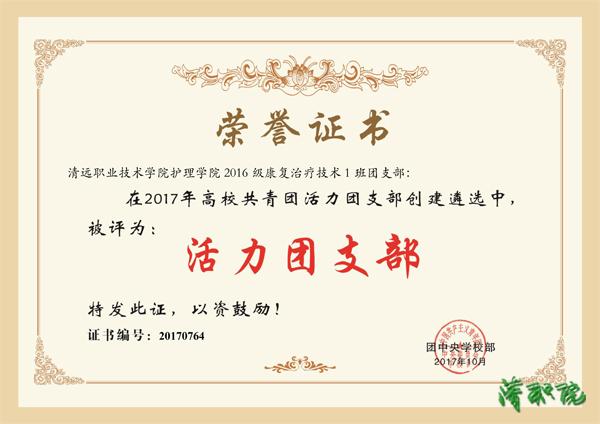 近日,从团省委学校部网站获悉,清远职业技术学院2016 级康复治疗技术1 班团支部在2017年高校共青团活力团支部创建遴选中被团中央学校部评为“活力团支部”。