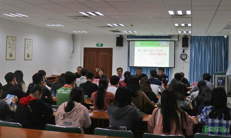 同学们也纷纷把自己身边发生的诈骗案件作了分享。学院与会领导和有关负责人在会上作了发言,希望同学们认真吸取他人的经验与教训,自觉增强抵制网络诱惑的能力,并积极行动起来,把学到的诈骗预防知识传播出去,让身边的同学和朋友也提高警惕,免受诈骗的侵害,杜绝网络诈骗的滋生和蔓延。