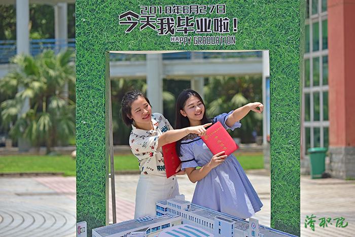 庆典活动形式多样,罗马广场安排了各种毕业体验活动,两旁的背景板上展示着2018届毕业生三年来的学习、生活剪影,还有“校长奖章”获得者的事迹介绍。同学们踩着红地毯走过毕业之门、在签名墙上签名留言,在创意背景板上留影纪念。在活动现场,同学们捧着毕业证兴奋不已地跟老师们一起拍照留念,脸上洋溢着久久不散的笑容,脚步迟迟不愿离开。各二级学院分别举行校友捐赠揭幕仪式,用各种方式表达毕业生对母校的感恩与祝福。