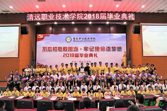 6月27日,清远职业技术学院举行2018届毕业庆典活动。学院领导班子成员,各二级学院院长、党总支书记(副书记)、辅导员、毕业班班主任和优秀毕业生代表参加活动。