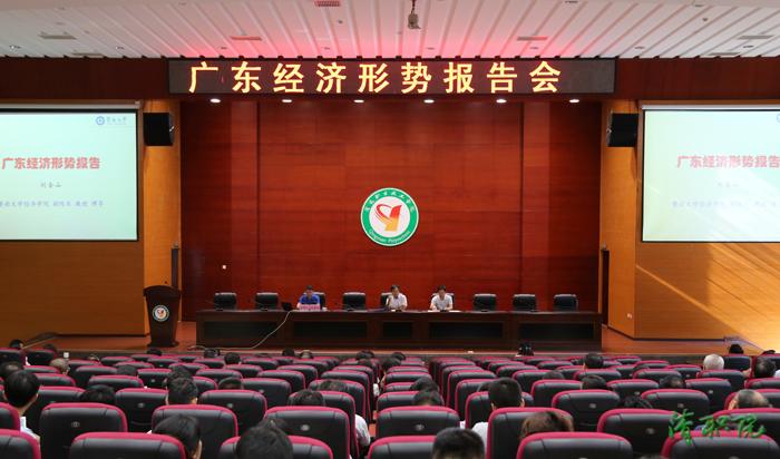 刘金山教授的报告分为三大部分,一是结合今年第一季度国家和广东省发布的经济数据,用大量的事实深入阐述当前广东经济形势稳中向好,继续保持全国前列。二是回顾广东改革开放四十年的经济发展历程,以深圳、佛山、东莞以及华为、大疆等大量的案例,阐述了“创新驱动”这一广东经济发展的关键,指出广东经济已进入创新驱动阶段。三是党的十八大以来在习近平新时代中国特色社会主义思想引领下,广东取得的一系列工作成效,解读我省贯彻习近平总书记重要批示指示精神、全面深化改革提出的“五个抓手”和“九大课题”,就如何“走在前列”对广东经济发展作出展望。