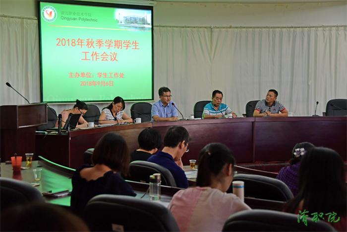 9月6日,清远职业技术学院召开2018年秋季学期学生工作会议,对新学期学生工作进行部署。学院党委书记林海龙、副院长陈景勇出席会议。