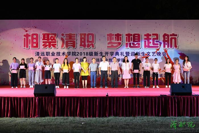 9月26日晚,清远职业技术学院在校园足球场举行2018级新生开学典礼暨迎新生文艺晚会。学院党委书记林海龙,院长胡刚,副院长许建,党委委员周琳、缪彦珍出席典礼并观看晚会,各部门负责人、全体辅导员、新生班主任和4200余名新生参加活动。
