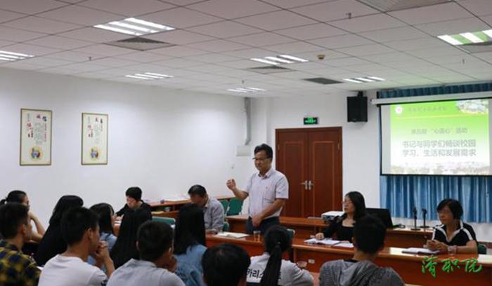 11月6日,清远职业技术学院举行第五期“心连心”活动,学院党委书记林海龙与2018年退役复学学生和2018级新生代表进行面对面交流,了解学生对学院教学管理、学生工作、后勤管理、文明校园建设等方面的意见与建议。学生工作处、教务科研处、后勤保卫处有关负责人参加活动。