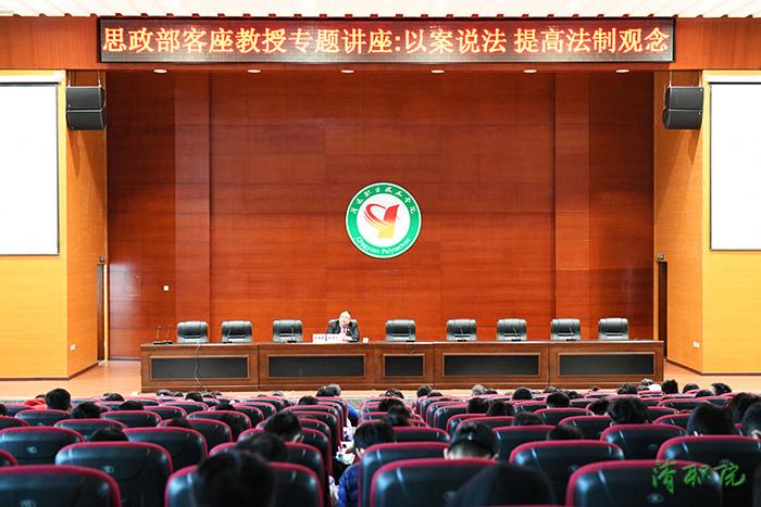 11月22日,全国优秀法官、佛冈县人民法院副院长蓝榕概走进清远职业技术学院思想政治理论课课堂,为学院2017级、2018级450多名学生代表上了一堂“以案说法,提高法律观念”为主题的法律常识课。