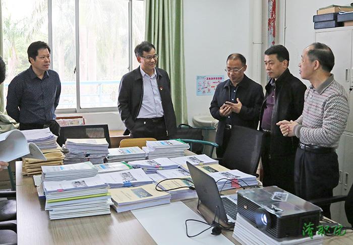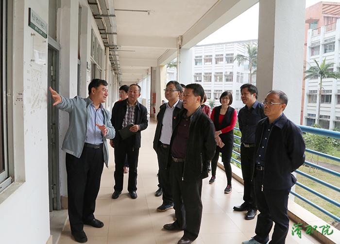12月22日,清远职业技术学院党委书记林海龙、院长胡刚等领导班子成员带领示范办公室和教务科研处、组织人事处、学工工作处、后勤保卫处等相关职能部门人员,到各二级教学单位检查示范校建设项目验收准备情况。