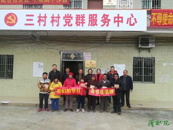 许建代表学院向村委会和荷州社区5户困难家庭、三村村5户困难家庭送去节日慰问金,鼓励他们增强生活信心,自力更生,在地方政府、村委会和帮扶单位的带领和帮助下,实现早日脱贫致富。