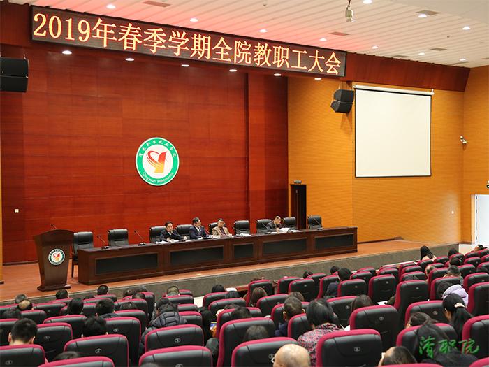 2月26日,清远职业技术学院在图书馆报告厅召开2019年春季学期开学教职工大会,总结过去一年学院主要工作成效,结合学习贯彻《粤港澳大湾区发展规划纲要》和国家、省职业教育改革发展有关文件精神,部署新学期工作。学院党委书记林海龙、院长胡刚在会上讲话,副院长陈景勇主持会议。