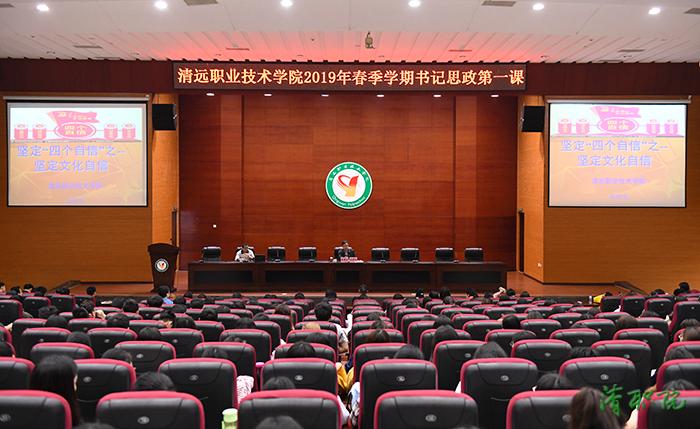3月29日,清远职业技术学院党委书记林海龙在图书馆学术报告厅为2017级445名学生上了一堂以“文化自信”为主题的思想政治理论课。
