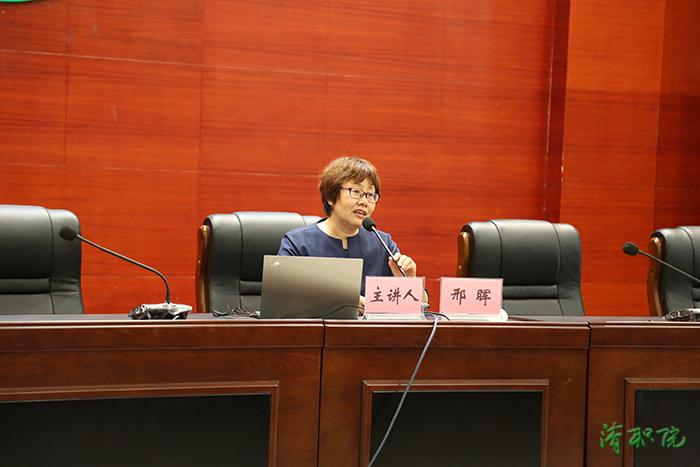 邢晖讲解了职业教育新政策和新行动两大问题。她从宏观角度、历史角度和系统角度深入分析了我国职业教育发展轨迹,详细解读了不同时期职业教育发展的相关政策,并重点解读了《国家职业教育改革实施方案》,对其中的“职教20条”的进行逐项讲解,提出要聚焦当中的新提法、新理念,并与2019年国务院政府工作报告有关内容结合起来学习,融会贯通,促进职业教育改革发展。落实新政策,新行动主要体现在“四个抓”,即要抓项目、抓结构、抓质量和抓合作,为学院推进高质量发展提出意见建议。