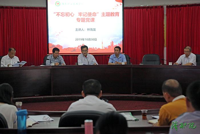 10月30 日,清远职业技术学院举行 “不忘初心 牢记使命”主题教育专题党课报告会。学院党委书记林海龙、院长胡刚分别作了主题教育专题党课报告。