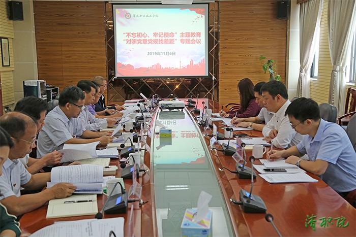 11月6日,清远职业技术学院召开“不忘初心、牢记使命”主题教育“对照党章找差距”专题会议,贯彻省主题教育领导小组有关通知要求,重点对照党章、《关于新形势下党内政治生活的若干准则》和《中国共产党纪律处分条例》,以正视问题的自觉和刀刃向内的勇气查找差距,不断增强党的意识、党员意识、纪律意识,提升政治境界、思想境界、道德境界,推动党员干部主动检视自我、自觉修正错误、自我整改提高。