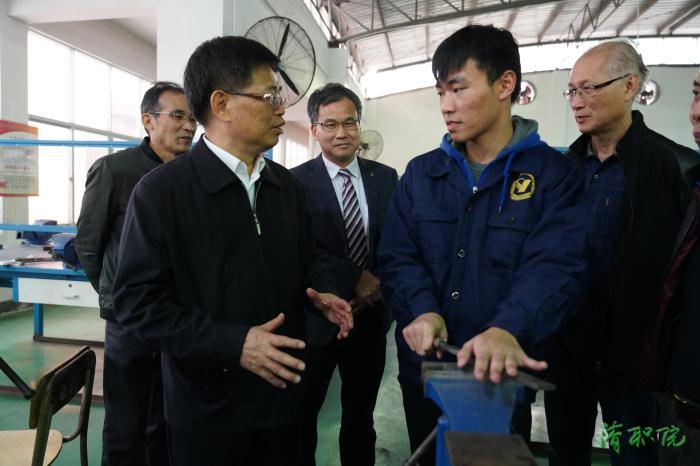 12月23日,广东省政协原副主席、省宋庆龄基金会主席唐豪,省粤港澳合作促进会执行会长、省港澳办原巡视员林迪夫等一行8人到清远职业技术学院考察。清远市政协副主席陈建华陪同,学院党委书记林海龙和相关部门负责人接待并介绍学院情况。
