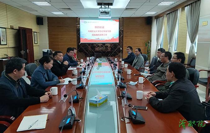 学院与华农专家团队一行就产学研合作、协同创新、高水平专业群建设(药品生产技术专业群)等议题进行了深入交流,并达成了开展科研合作、共建产学研平台的初步意向。座谈会后,胡刚陪同客人参观了学院农业一体化实践教学基地。
