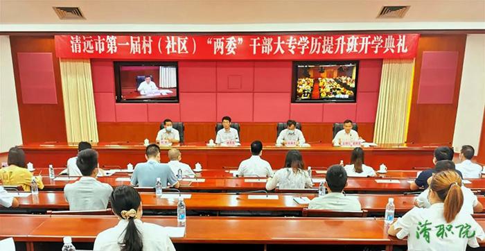 5月19日上午,清远市第一届(社区)“两委”干部大专学历提升班开学典礼,以视频会议的形式在清远国际会展中心举行。市委常委、组织部部长姚楚旋出席开学典礼并作开班动员讲话,市委组织部常务副部长麦秋生主持开学典礼,清远职业技术学院党委书记林海龙、院长胡刚、副院长李生明等出席。