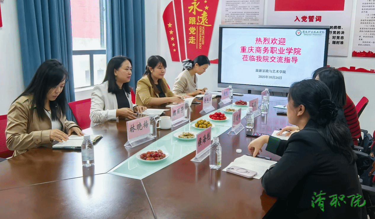 10月24日,重庆商务职业学院文化旅游学院副院长马建林一行3人到清远职业技术学院开展专题考察,聚焦现代家政服务与管理专业建设,探寻专业高质量发展路径。清远职业技术学院旅游家政与艺术学院党总支书记颜丽芳、副院长黄艳男携家政专业核心教学团队热情接待,双方围绕核心议题展开了深入交流。
